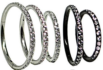 Hinged gem clicker ring in stainless steel and black.